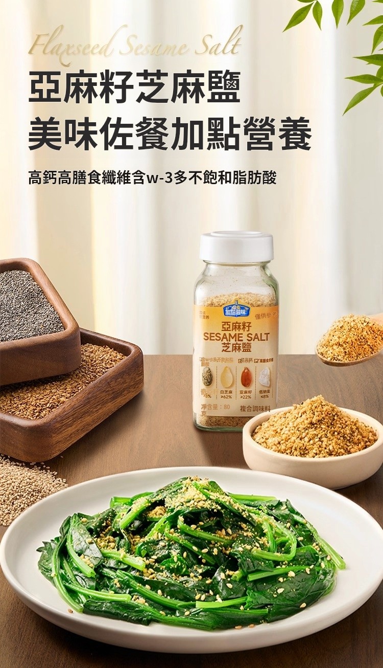 20分鐘前【熱銷】亞麻籽芝麻鹽 减肥人士必備 水煮菜的靈魂 多重口感 增香调味 轻食控卡 0負擔0添加!! - 【破盤嗨購】買三送四 7入組 NT$1398